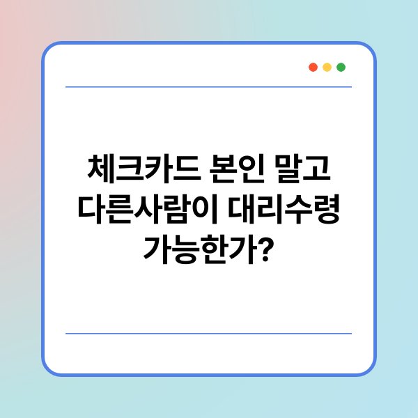 A1. 체크카드는 원칙적으로 본인만 수령 가능하나, 일부 카드사에서는 대리 수령을 허용할 수 있습니다.