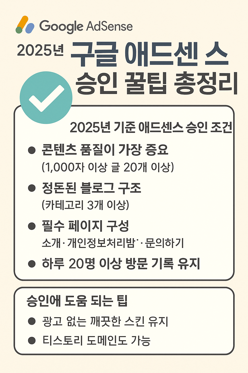 오늘은 2025년 기준, 티스토리 블로그로 애드센스 승인을 받기 위한 조건과 꿀팁을 낱낱이 정리해드릴게요!